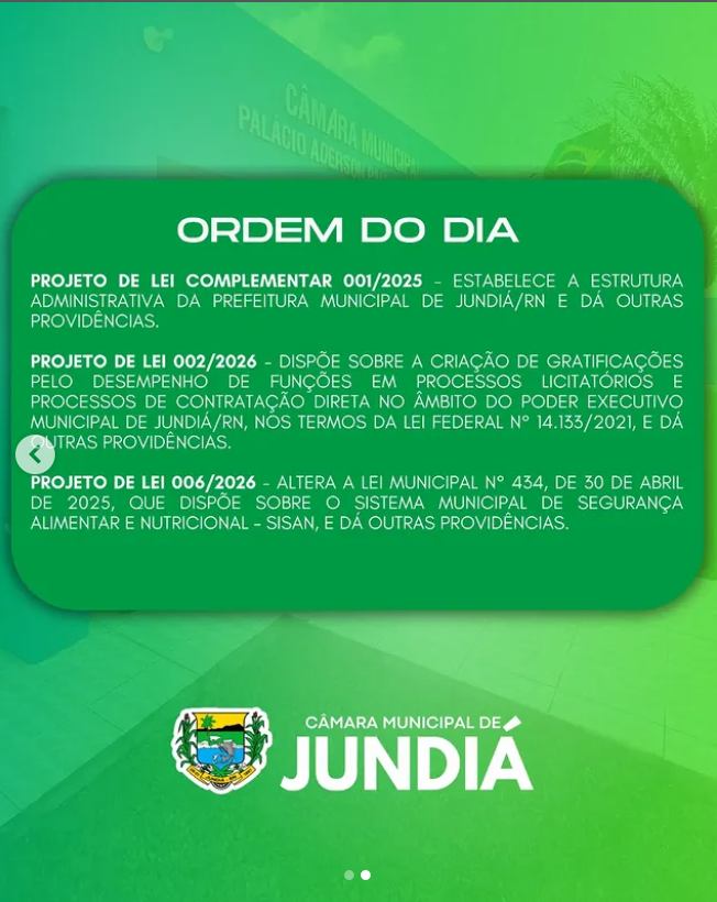 Amanhã a Câmara Municipal de Jundiá dará início aos trabalhos legislativos com a primeira sessão ordinária do ano.